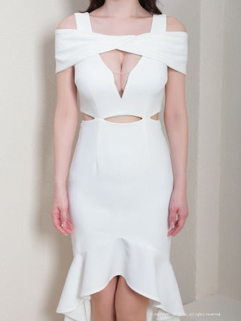 4. 【GLAMOROUS/グラマラス】2way ノースリーブ ワンカラー カットアウト シアー フリル テールカット ロングテールドレス(gmsv821)