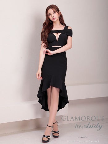 キャバドレス ミニドレス GLAMOROUS グラマラス 2way ノースリーブ ワンカラー カットアウト シアー フリル テールカット ロングテールドレス