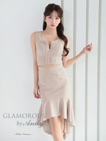 キャバドレス 膝丈ドレス GLAMOROUS グラマラス ワンカラー ジップデザイン ノースリーブ セットアップ テールカット