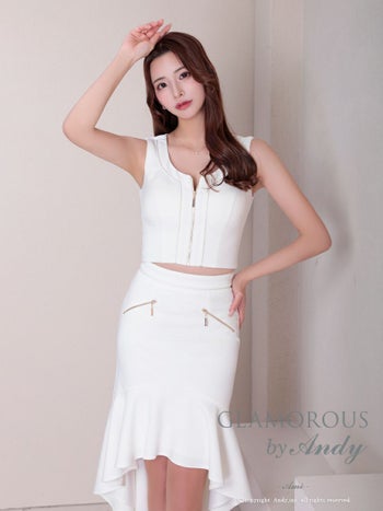 谷間の調整ができるのが嬉しい♪ 【GLAMOROUS/グラマラス】ジップデザイン ワンカラー ノースリーブ セットアップ ロングテールドレス(gmsv855)