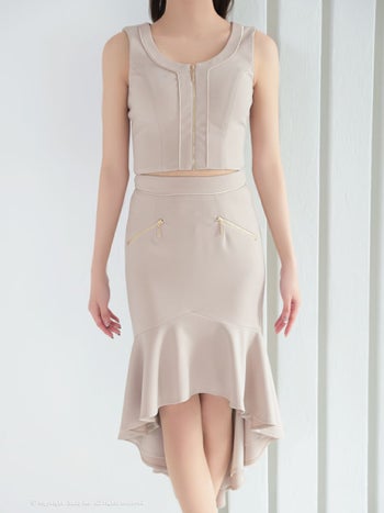 4. 【GLAMOROUS/グラマラス】ジップデザイン ワンカラー ノースリーブ セットアップ ロングテールドレス(gmsv855)
