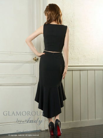 テールカットが美脚効果UP☆ 【GLAMOROUS/グラマラス】ノースリーブ ジップデザイン ワンカラー セットアップ ロングテールドレス(gmsv855)