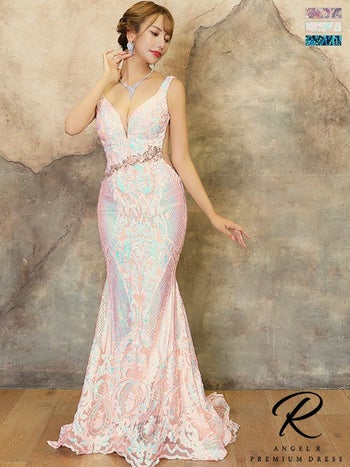 オーロラに輝くスパンコールを全身に♪ 【Angel R PREMIUM/プレミアム】ノースリーブ くびれ透け バストVウエスト バースデー フラワービジューマーメイドロングドレス(AP80303)