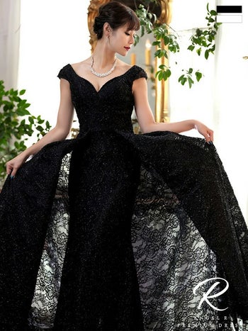ノースリーブ ラメレース バースデー フレンチスリーブAラインロングドレスのイメージ画像2