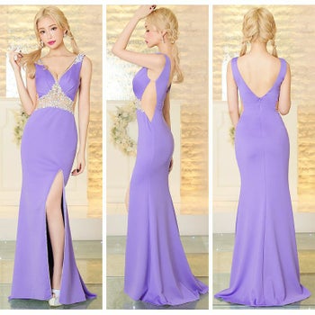4. 【Angel R/エンジェルアール】Vバストタックウエストパールビジュータイトロングドレス (AR23310)