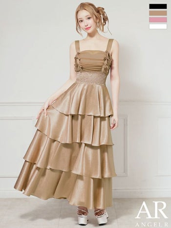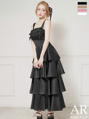 キャバドレス Angel R エンジェルアール リボン フリル ノースリーブ ティアード シャーリング フレアロングドレス