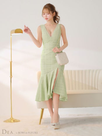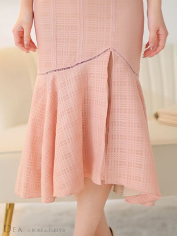 4. SALE【DEA.by ROBE de FLEURS/ディア】シンプル チェックレース バスト スリット マーメイドワンピース ノースリーブ フレアロングドレス(DE2999)