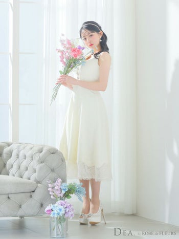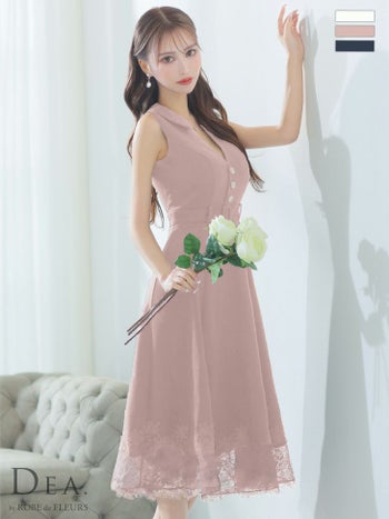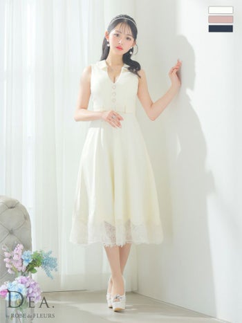 XS~Lあり!エレガントなミディアムドレス♪ 【DEA.by ROBE de FLEURS/ディア】サマーツイード ノースリーブ 襟付き 裾レース フレア ワンピース(DE3170)