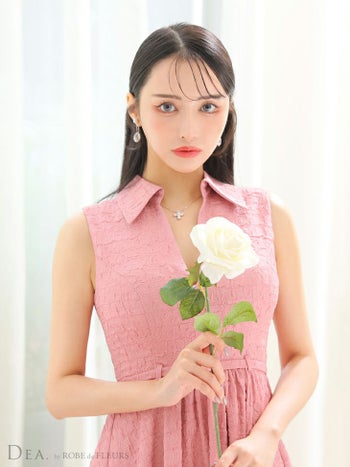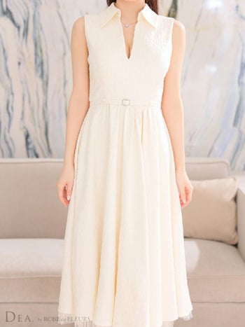 3. 【DEA.by ROBE de FLEURS/ディア】襟付き ノースリーブ チュール ボリューム シンプル ワンピース ベルト フレアロングドレス(DE3250)