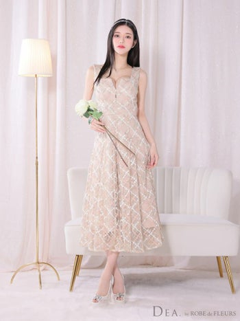 4. 【DEA.by ROBE de FLEURS/ディア】ジップデザイン ガーリー ノースリーブ 刺繍レース Aラインロングドレス (DE3262)