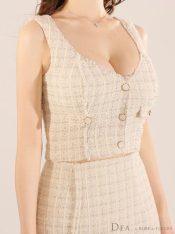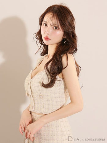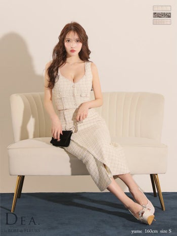 バスト約87cm ウエスト約63~68cm ヒップ約89cm 着丈(トップス)約42cm(スカート)約73~87cm