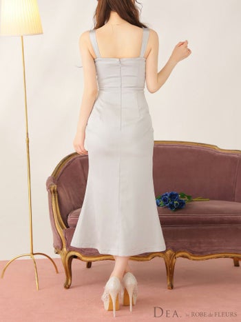 4. 【DEA.by ROBE de FLEURS/ディア】シンプル ワンピース フロントボタン ノースリーブ スリットマーメイド サテン フレアロングドレス(DE3274)