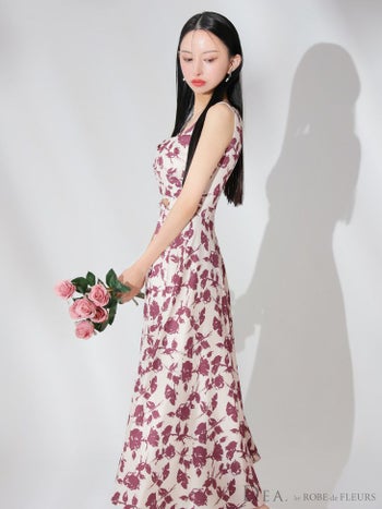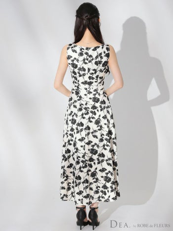 3. 【DEA.by ROBE de FLEURS/ディア】ノースリーブ ベルトデザイン 花柄 エレガント スクエアネック Aラインロングドレス(DE3382)
