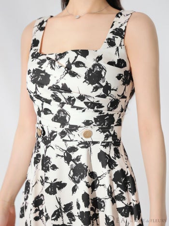4. 【DEA.by ROBE de FLEURS/ディア】ノースリーブ ベルトデザイン 花柄 エレガント スクエアネック Aラインロングドレス(DE3382)