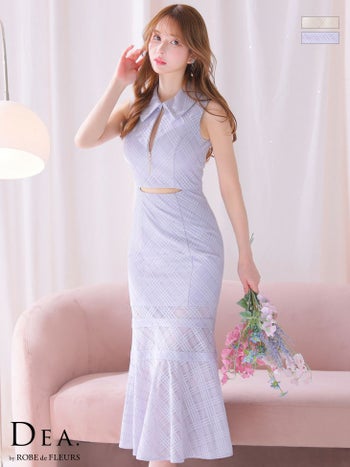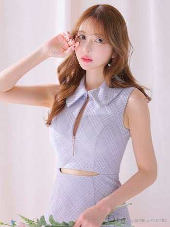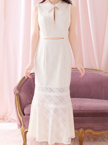 Lあり!品のある肌見せでエレガント★ 【DEA.by ROBE de FLEURS/ディア】襟付き ウエストカット ジップデザイン ノースリーブ チェック柄 マーメイド タイトロングドレス(DE3522)