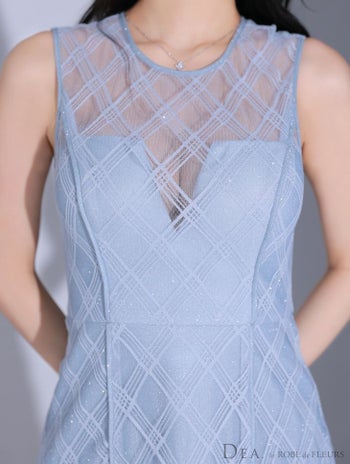 Lあり!涼しげなデザイン★ 【DEA.by ROBE de FLEURS/ディア】シースルー ノースリーブ チェック柄 セクシー Aラインロングドレス (DE3553)