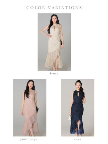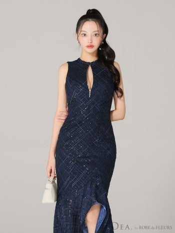 4. 【DEA.by ROBE de FLEURS/ディア】ノースリーブ フリル マーメイド チェック柄 シンプル ワンピース ジップデザイン スパンコール付き刺繍レース フレアロングドレス(DE3557)