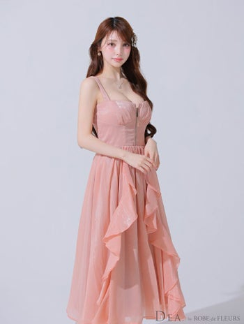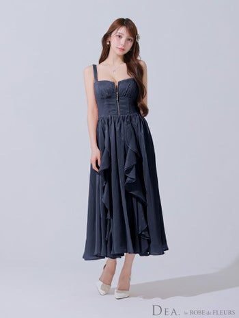 4. 【DEA.by ROBE de FLEURS/ディア】ジップデザイン サテン フリル エレガント ノースリーブ オープンバスト Aラインロングドレス (DE3927)