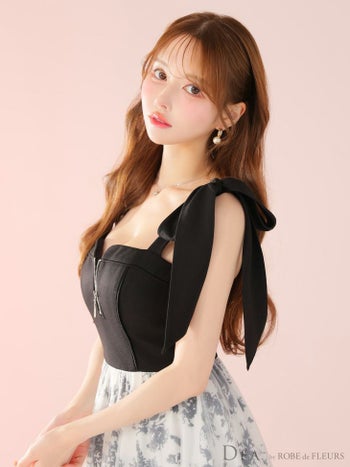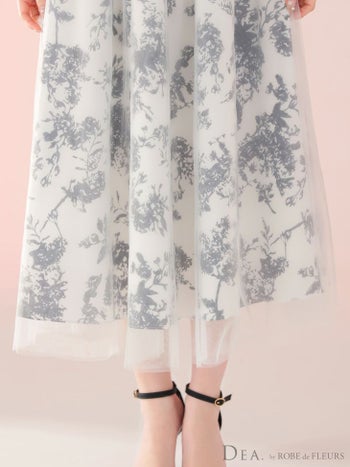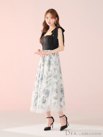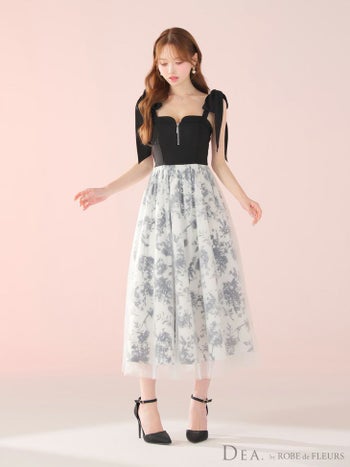 3. 【DEA.by ROBE de FLEURS/ディア】花柄 チュール 肩リボン ジップデザイン ノースリーブ Aラインロングドレス(DE4301)