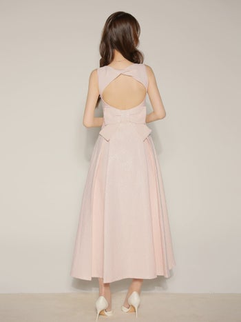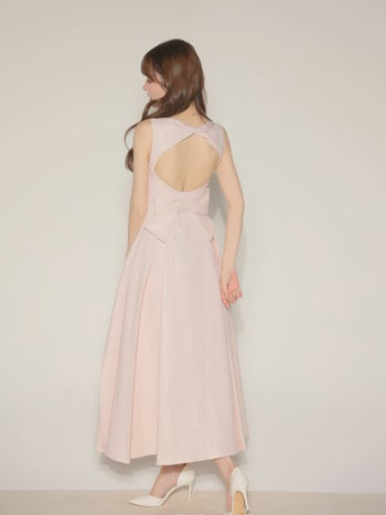 4. 【ROBEdeFLEURS/ローブドフルール】ラメツイル ノースリーブ バックリボン バックオープン ジップデザイン エレガント Aラインロングドレス (LF4635)