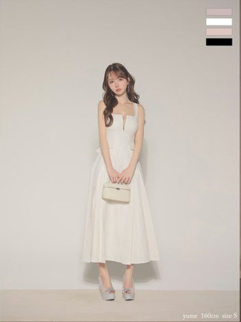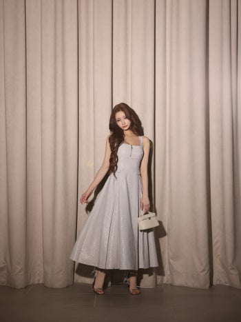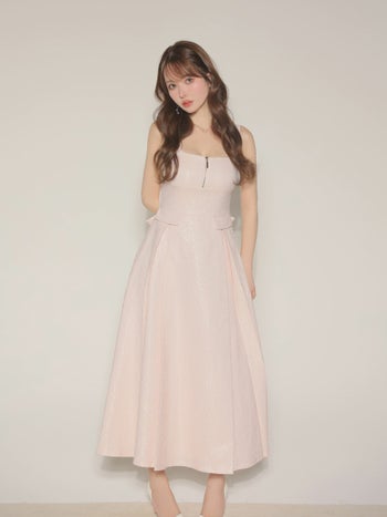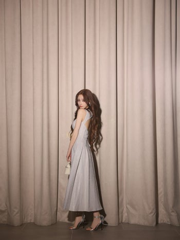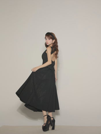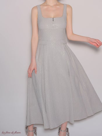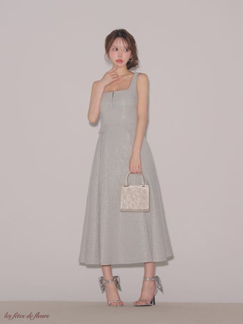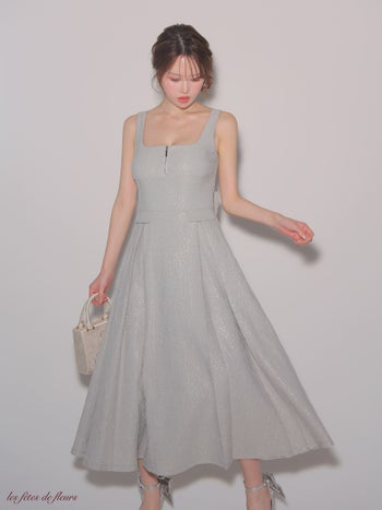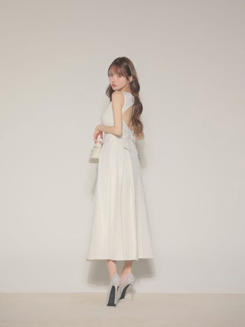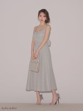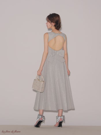 3. 【ROBEdeFLEURS/ローブドフルール】バックオープン ジップデザイン ラメツイル ノースリーブ バックリボン エレガント Aラインロングドレス (LF4635)