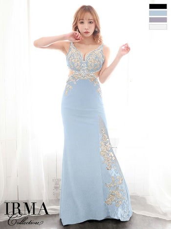 3. 【IRMA/イルマ】キャミソール バック編み上げ セクシー レース ワンカラー フラワービジュー サイドウエストカット シアー タイトロングドレス(31353)