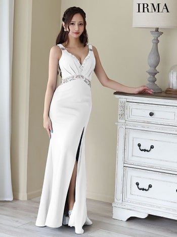 4. 【IRMA/イルマ】セクシー オープンバスト ノースリーブ スリット タイトロングドレス (41662)