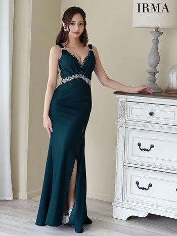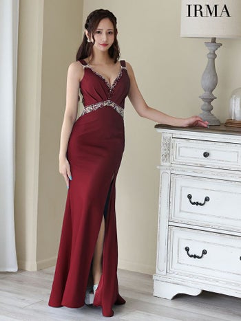 スリットがsexy♪ 【IRMA/イルマ】セクシー オープンバスト ノースリーブ スリット タイトロングドレス (41662)