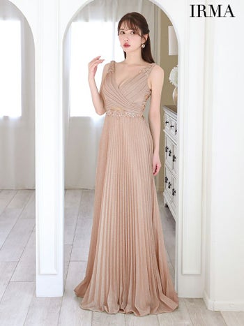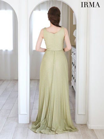 3. 【IRMA/イルマ】エレガント オープンバスト ノースリーブ ウエストカット ビジュー プリーツ ラメニット Aラインロングドレス (41743)