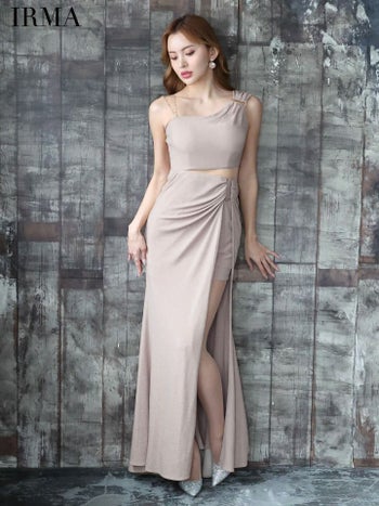 キャバドレス IRMA イルマ ノースリーブ ウエストカット アシンメトリー セクシー スリット タイトロングドレス