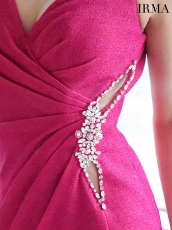 4. 【IRMA/イルマ】セクシー オープンバスト ノースリーブ ラメニット ビジュー スリット タイトロングドレス (51781)
