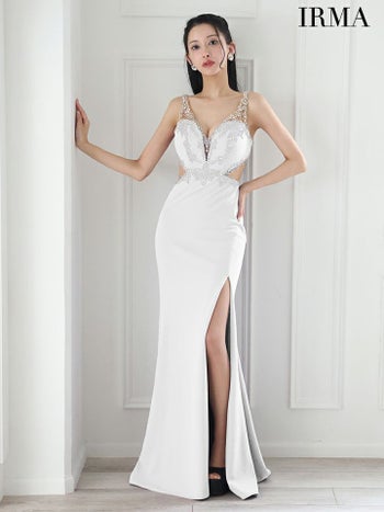 3. 【IRMA/イルマ】バックリボン ビジュー スリット くびれ透け ノースリーブ タイトロングドレス (51875)