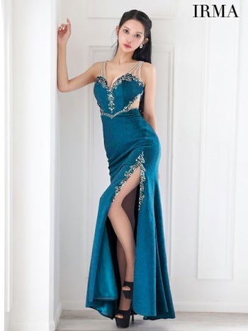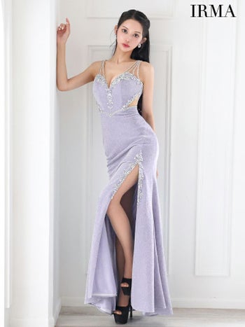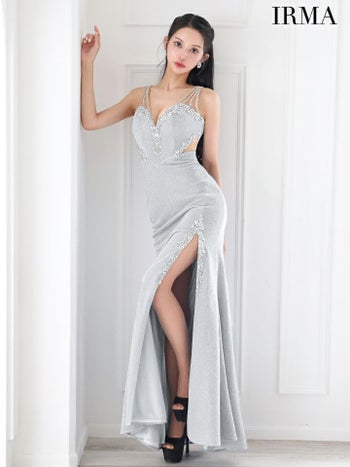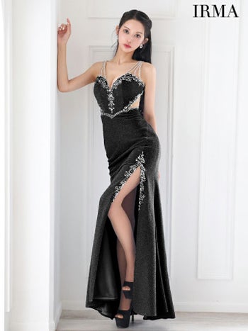キャバドレス IRMA イルマ バックレースアップ くびれ透け ビジュー スリット ノースリーブ タイトロングドレス