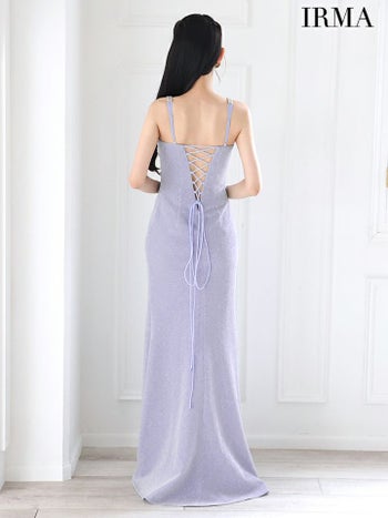 3. 【IRMA/イルマ】バックレースアップ くびれ透け ビジュー スリット ノースリーブ タイトロングドレス (51901)