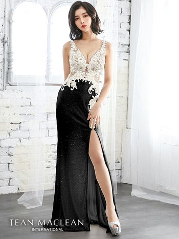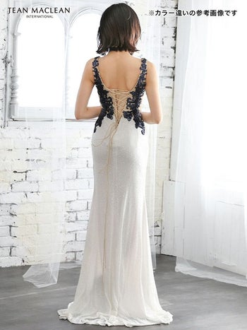 3. 【JEANMACLEAN/ジャンマクレーン】スパンコール 刺繍レース ノースリーブ タイトロングドレス[ブラック×シャンパン]