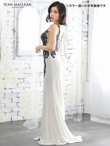 4. 【JEANMACLEAN/ジャンマクレーン】スパンコール 刺繍レース ノースリーブ タイトロングドレス[ブラック×シャンパン]