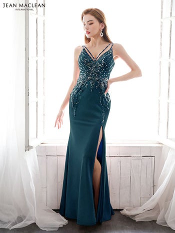 3. 【JEANMACLEAN/ジャンマクレーン】ノースリーブ ビジュー セクシー スリット タイトロングドレス(31454)