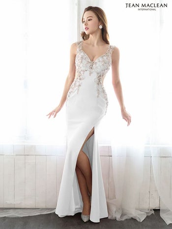 4. 【JEANMACLEAN/ジャンマクレーン】フラワービジュー ワンカラー ノースリーブ サイドスリット ロングドレス(41590)