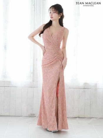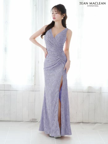 Lあり!大胆なスリットがSEXY♪ 【JEANMACLEAN/ジャンマクレーン】エレガント オープンバスト ノースリーブ フラワーレース スリット タイトロングドレス (51762)