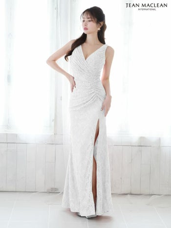 4. 【JEANMACLEAN/ジャンマクレーン】エレガント オープンバスト ノースリーブ フラワーレース スリット タイトロングドレス (51762)