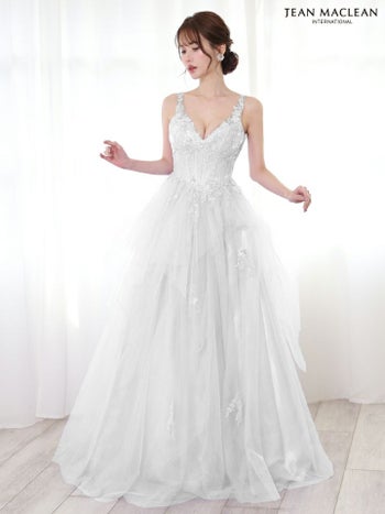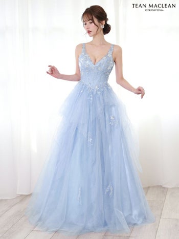 ボリュームのあるチュールが存在感抜群♪ 【JEANMACLEAN/ジャンマクレーン】エレガント オープンバスト ノースリーブ スパンコール 刺繍 チュール Aラインロングドレス (51828)