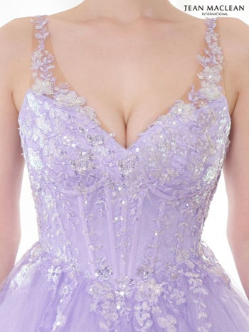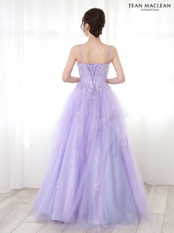 3. 【JEANMACLEAN/ジャンマクレーン】エレガント オープンバスト ノースリーブ スパンコール 刺繍 チュール Aラインロングドレス (51828)