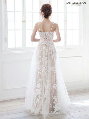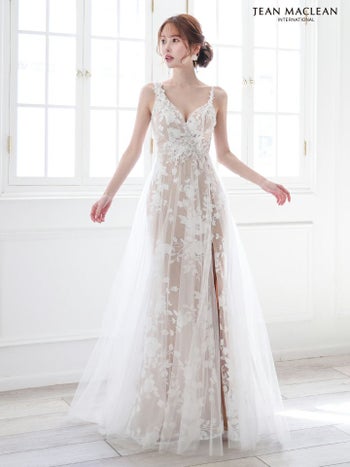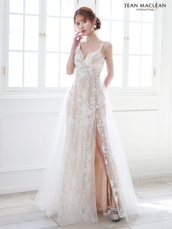 4. 【JEANMACLEAN/ジャンマクレーン】エレガント オープンバスト ノースリーブ フラワー刺繍 レース シアー スリット Aラインロングドレス (51863)