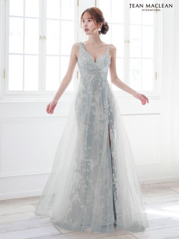 3. 【JEANMACLEAN/ジャンマクレーン】エレガント オープンバスト ノースリーブ フラワー刺繍 レース シアー スリット Aラインロングドレス (51863)