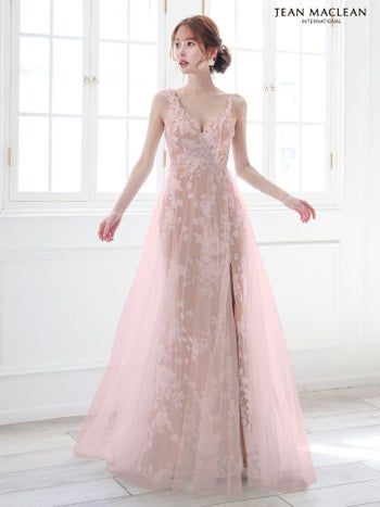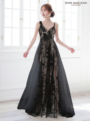 キャバドレス JEANMACLEAN ジャンマクレーン エレガント オープンバスト ノースリーブ フラワー刺繍 レース シアー スリット Aラインロングドレス