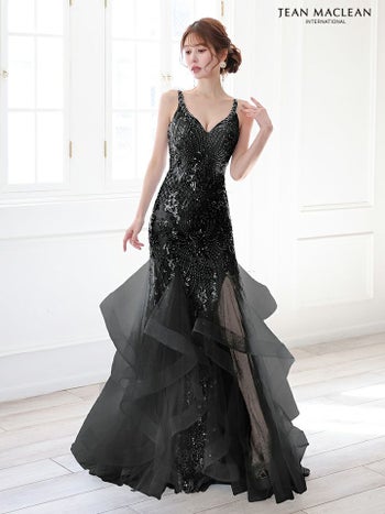 キャバドレス JEANMACLEAN ジャンマクレーン ノースリーブ バースデー スパンコール パール フリル スリット マーメイドロングドレス