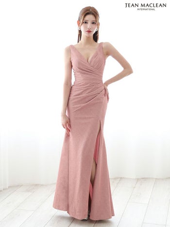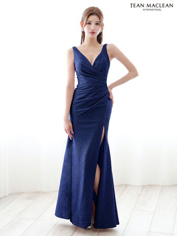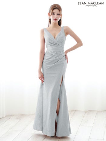 4. 【JEANMACLEAN/ジャンマクレーン】スリット クロスデザイン ワンカラー ノースリーブ タイトロングドレス(51880)