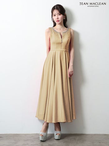 キャバドレス JEANMACLEAN ジャンマクレーン ノースリーブ ジップデザイン ストレッチサテン ビジュー エレガント Aラインロングドレス