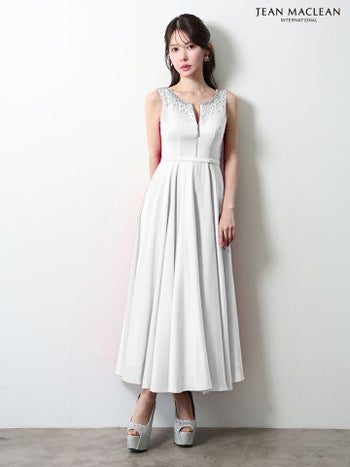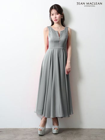 4. 【JEANMACLEAN/ジャンマクレーン】ノースリーブ ジップデザイン ストレッチサテン ビジュー エレガント Aラインロングドレス(51968)