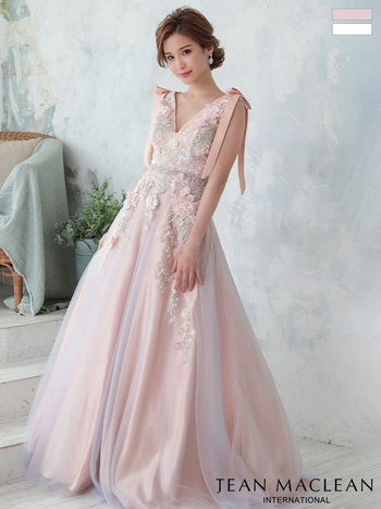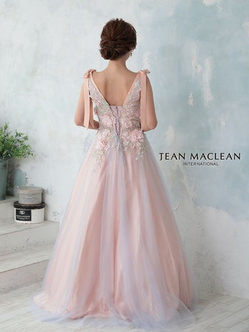 3. SALE【JEANMACLEAN/ジャンマクレーン】肩リボン立体フラワー刺繍 チュール バースデー プリンセス フレアロングドレス(91648)